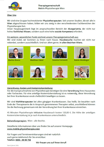 Infoblatt A4 Mobile Physiotherapie Wien